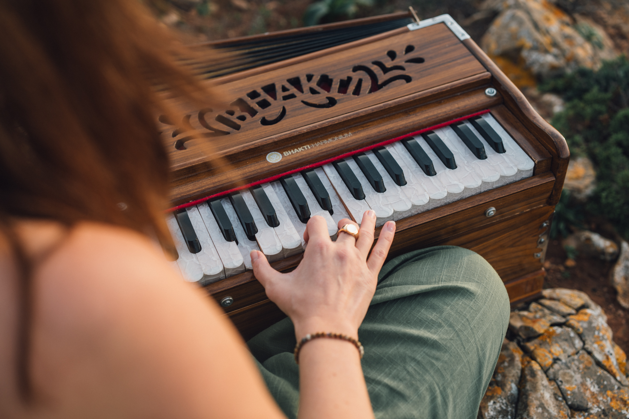 Im Aufbaukurs gehst du in all deinen Kenntnissen am Harmonium noch tiefer. Du tauchst noch weiter in die Welt der Mantras ein und lernst mehr über ihre Bedeutung und Aussprache. Dein Repertoire erweitert sich auch um Medicine Music mit englischen und deutschen Liedern. Du lernst durch verschiedene Übungen und Techniken aus dem altindischen Gesang noch besser mit deiner Stimme zu arbeiten und sammelst Selbstbewusstsein, damit es dir leichter fällt mit und vor anderen zu singen.