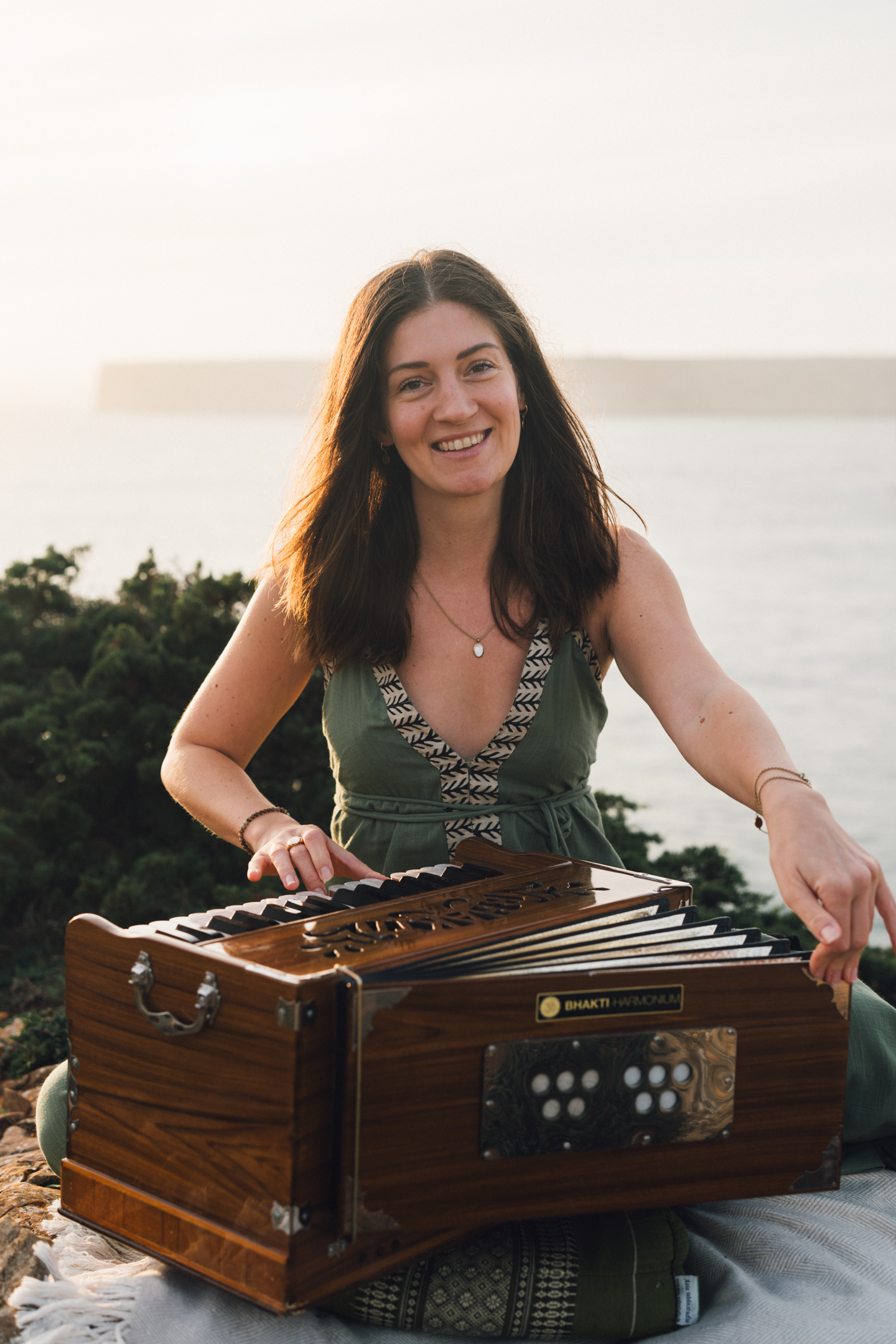 Ich bin Bhakti-Yogalehrerin, Musikerin und Raumhalterin aus tiefstem Herzen. Seit über 5 Jahren begleite ich Menschen durch Kirtan, Mantra-Praxis und Stimmarbeit zurück in ihre Verbindung – zur eigenen Stimme, zur inneren Wahrheit und zum vollen Ausdruck ihrer Authentizität.