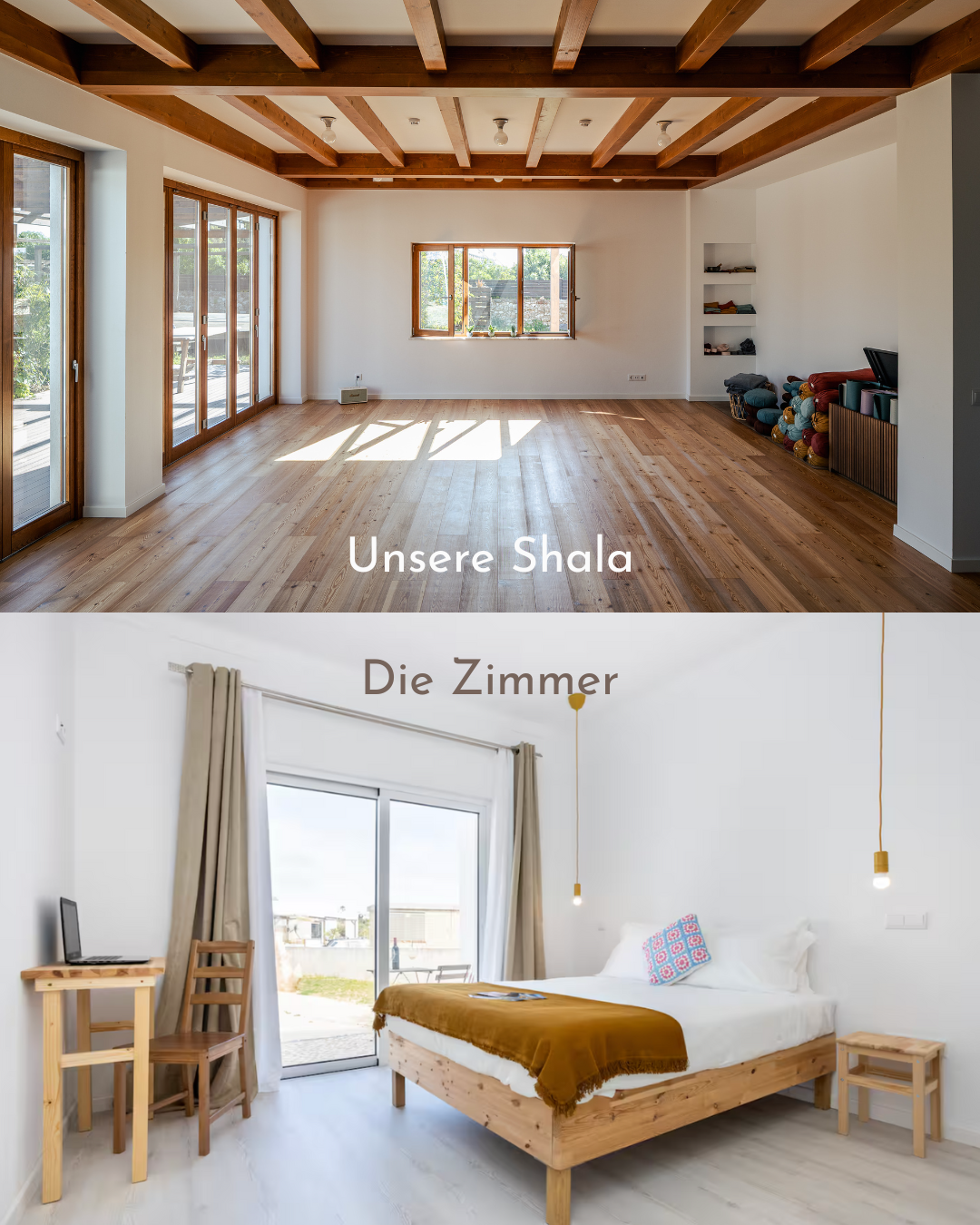 Shala: Unsere Bhakti Yoga Ausbildung findet im Mandala Sagres statt – einer lichtdurchfluteten, ruhigen Shala, nur 10 Minuten vom Meer entfernt. Hier üben, singen und praktizieren wir täglich in einer warmen, herzöffnenden Atmosphäre.